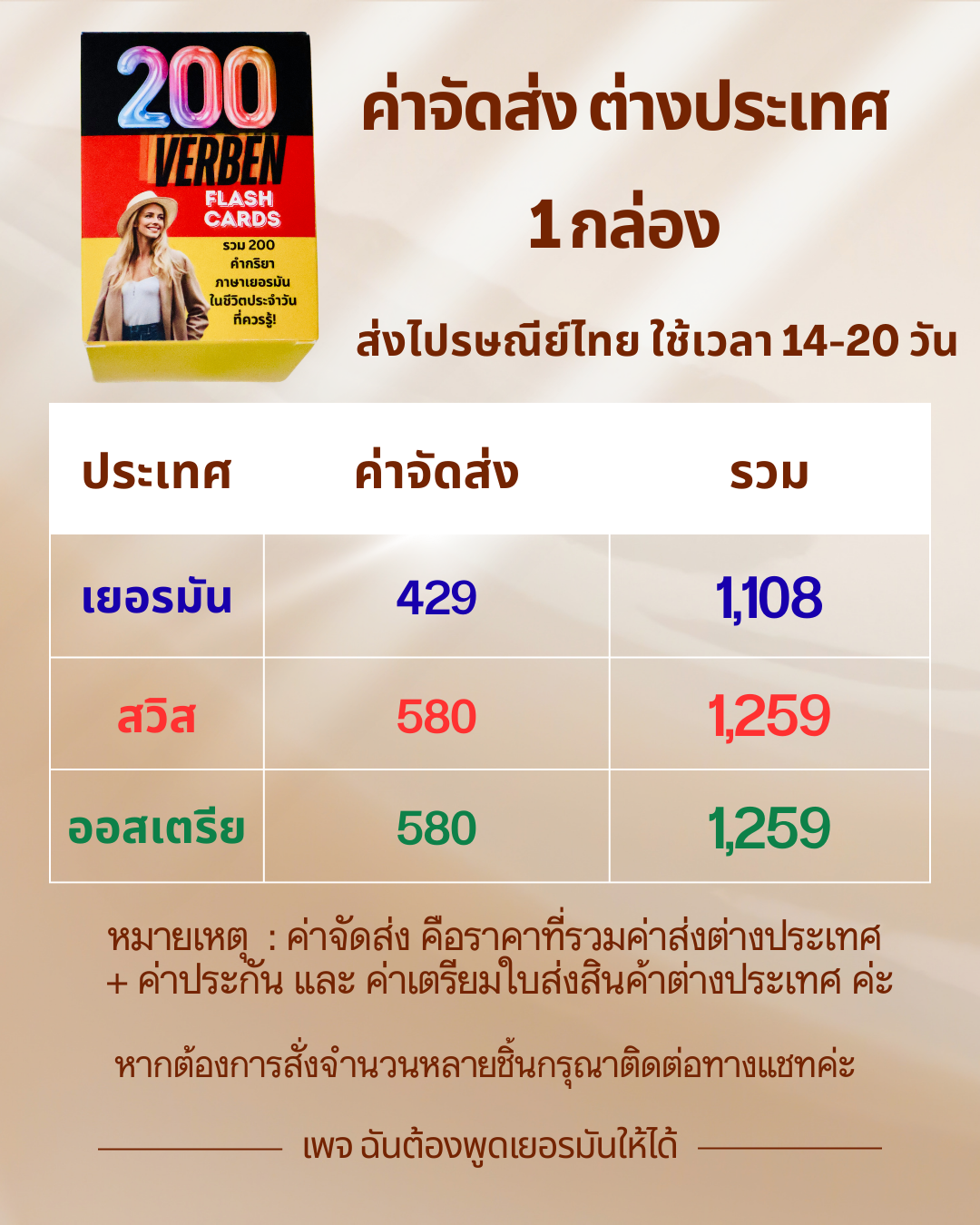 การจัดส่งไปยัง เยอรมนีและออสเตรีย อาจมีการเรียกเก็บที่ปลายทาง